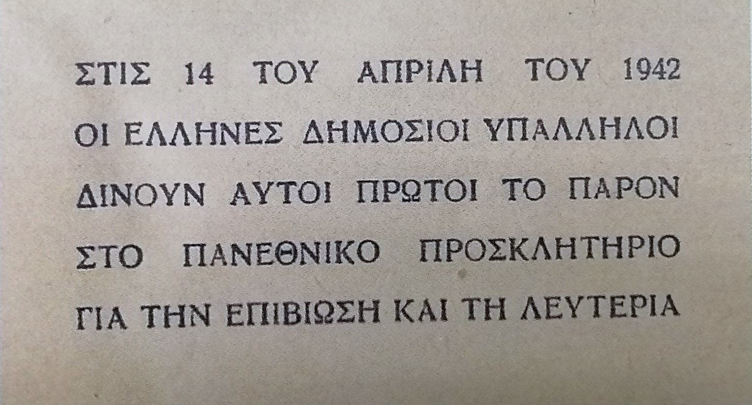 Συμπληρώνονται φέτος 80 χρόνια από την ιστορική οκταήμερη απεργία των Τριατατικών Υπαλλήλων στις 14 Απρίλη 1942 – 14 Απριλίου 2022.