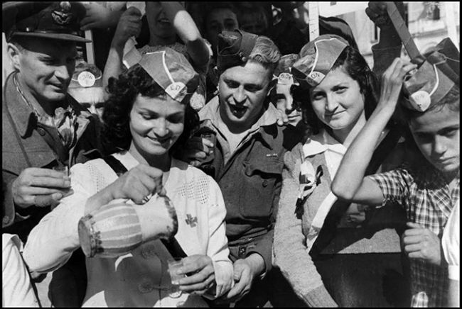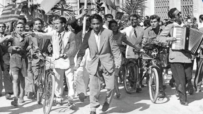 Η μπαρουτοκαπνισμένη Αθήνα, που γνώρισε την πείνα και το βόλι του κατακτητή, το στιλέτο του προδότη, η αδάμαστη Αθήνα που τρία χρόνια πάλεψε, ξεχύθηκε ζωντανή ανθρωποθάλασσα να διαλαλήσει τη Νίκη της, να γιορτάσει τη Λευτεριά της.