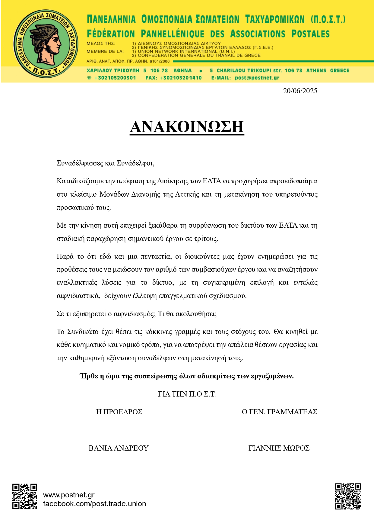 ΑΝΑΚΟΙΝΩΣΕΙΣ • 20 ΙΟΥΝΙΟΥ 2025