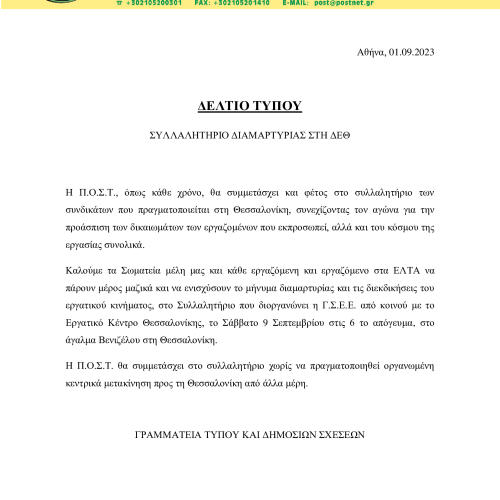 Πρωτ.: 18 Αθήνα, 11/02/2021 Προς: κ. Γιώργο Κωνσταντόπουλο Διευθύνοντα Σύμβουλο ΕΛΤΑ Κύριε Σύμβουλε, Στις 15/02/2021 ξεκινά η εκπαίδευση των νέων διοικητικών στελεχών της εταιρείας, στην οποία θα λάβουν μέρος συνάδελφοι με σημαντική εργασιακή εμπειρία και υψηλό μορφωτικό επίπεδο, καθώς στο σύνολό τους είναι πτυχιούχοι τριτοβάθμιας εκπαίδευσης και πολλοί από αυτούς διαθέτουν και […]