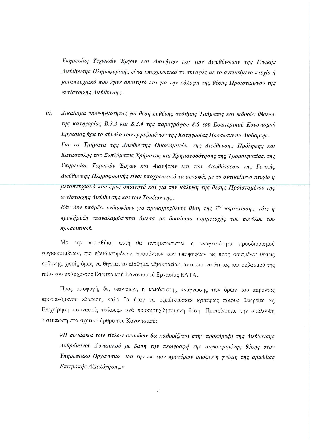 iii. Δικαίωμα υποψηφιότητας για θέση ευθύνης στάθμης Τμήματος και ειδικών θέσεων της κατηγορίας Β.3.3 και Β.3.4 της παραγράφου 8.6 του Εσωτερικού Κανονισμού Εργασίας έχει το σύνολο των εργαζομένων της Κατηγορίας Προσωπικού Διοίκησης.