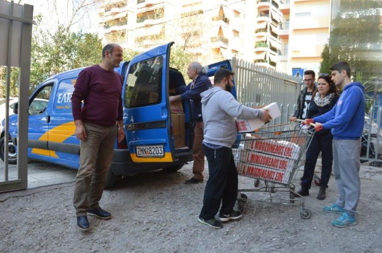 Οι συνάδελφοι Χρήστος Ζορμπάς, η Σοφία Στεργίου και ο Σπύρος Μπουντούρης που συνόδευαν την αποστολή, μαζί με τον εκπρόσωπο της ΠΟΣΤ Γιώργο Παπανικολάου, δέχτηκαν τις ευχαριστίες και τις ευχές από τον πατήρ Αντώνιο Παπανικολάου και τους υπεύθυνους της «ΚΙΒΩΤΟΥ του κόσμου».