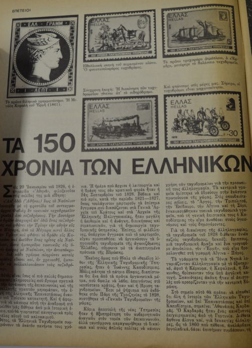 Με αφορμή τη συμπλήρωση των 150 χρόνων από την ίδρυση των Ελληνικών Ταχυδρομείων, δημοσιεύεται στο περιοδικό «ΓΥΝΑΙΚΑ» Αριθ.743/ 5 Ιουλ. 1978 ένα πολύ ωραίο αφιέρωμα της δημοσιογράφου Ρούλας Αγγελάκη με συνοπτική περίληψη της ιστορίας των Ελληνικών Ταχυδρομείων, το οποίο σας παρουσιάζουμε ολόκληρο.